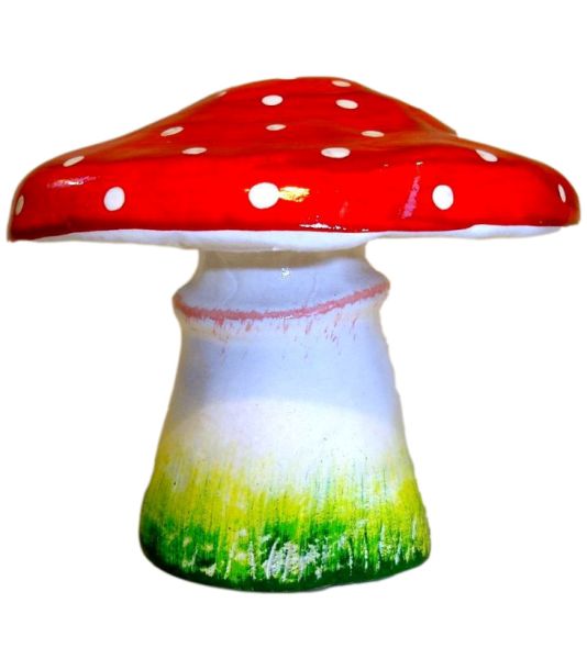Deze terracotta paddenstoel is van hoogwaardige Duitse kwaliteit. Deze wordt nog geheel volgens traditionele wijze met de hand gemaakt en beschilderd. Handgegoten in een mal en vervolgens handbeschilderd en afgelakt met een glanslak. Van het Duitse familiebedrijf Griebel die sinds 1880 als eerste tuinkabouters op de markt bracht.