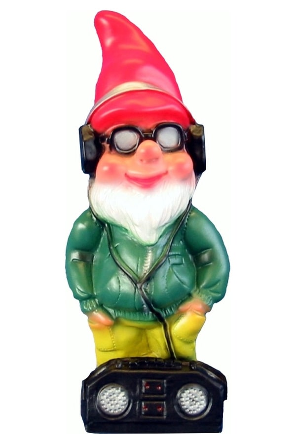 Coole tuinkabouter met radio en bewegingsmelder met een "fiet fieuw" geluid