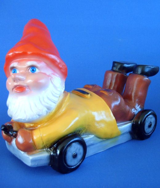 Tuinkabouter monteur op rolwagen